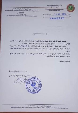وأكدت اللجنة في بيان عقب اجتماعها الليلة بمباني وزارة الشؤون الإسلامية والتعليم الأصلي في العاصمة نواكشوط إنها أجرت اتصالاتها بكافة ولايات البلاد، وأجرت التحريات اللازمة ولم تتوصل بما يثبت رؤية الهلاب الليلة.